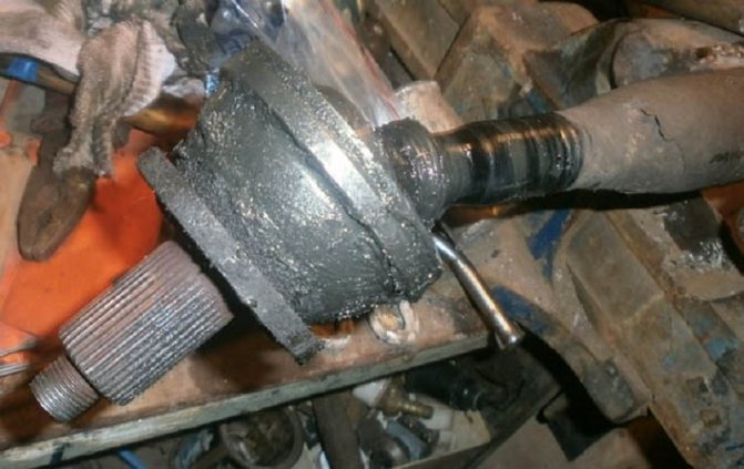 После этого появляется люфт в корпусе шарнира и как следствие стуки и скрипы во время движения автомобиля.