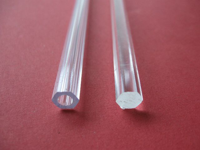 Для изготовления «ангельских глазок» можно использовать прозрачные пластиковые стержни. Они используются для жалюзи, чтобы открывать и закрывать их поворотами влево и вправо (поворотные стержни для горизонтальных жалюзи). Такие стержни бывают разные, из разных материалов. В этой статье будет описываться процесс изготовления “ангельских глазок” из не полого пластикового стержня шестигранной формы, диаметром 8 мм. Можно поискать такой стержень в интернет-магазинах, в том числе в международных (англ. название blind rod), либо придумать, что можно приспособить подобное в качестве материала для колец “ангельских глазок”. Стержень около 1 метра длиной и из него можно сделать 2–3 кольца, в зависимости от их размера.