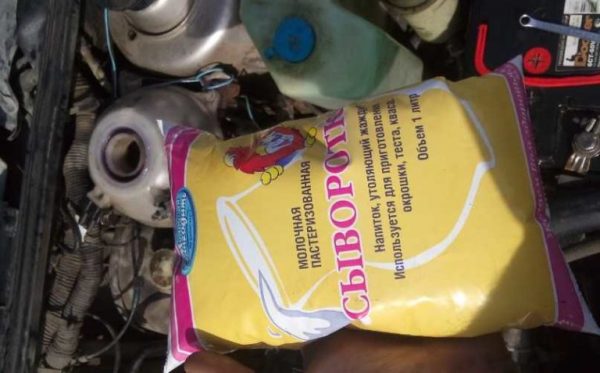 Можно использовать молочную сыворотку. Перед использованием сыворотку надо процедить через марлю, чтобы удалить имеющиеся в ней сгустки и осадок. Народные умельцы рекомендуют разные сроки нахождения сыворотки в системе охлаждения. Некоторые ездят с ней 200–300 км, другие заливают, прогревают мотор и сливают.