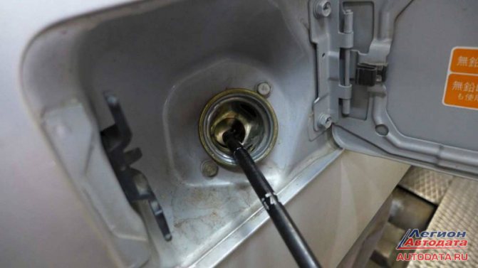 Осматривается горловина бензобака.