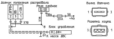 Схема подключения и распиновка разъемов датчика положения распределительного вала.