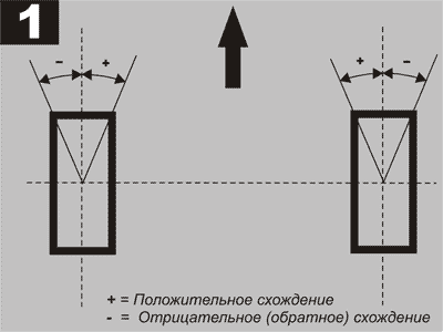 - У заднеприводных автомобилей колеса должны быть слегка повернуты друг к другу – это называется положительное схождение. В движении они разъезжаются и становятся параллельно.