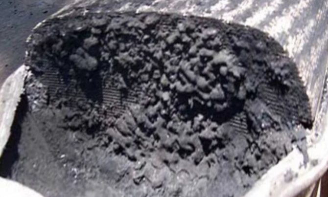 Фильтр DPF (Diesel Particulate Filter), с отложениями на внутренних каналах
