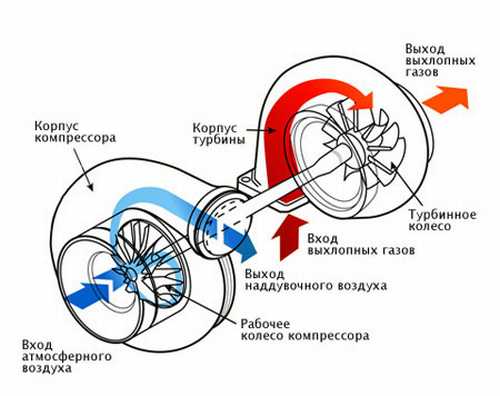Реальную же прибавку в мощности можно получить, только установив компрессор. Если он приводится механической передачей от коленвала, то такое устройство чаще всего называют механическим нагнетателем в России, compressor — в Германии, supercharger — в Америке и blower — в Англии. Если же компрессор вращается турбиной, размещенной в выпускном тракте двигателя, то его чаще всего называют турбонагнетателем (turbocharger).