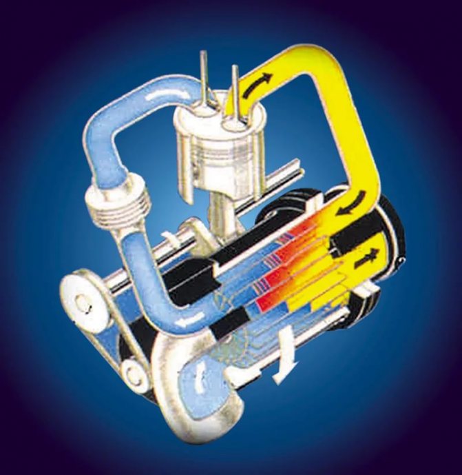 Поступающий из нагнетателя воздух проходит через интеркулер, что снижает температуру нагнетаемого воздуха примерно на 10°C, способствуя более высокой степени его сжатия.