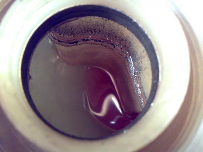- Во время слива антифриза вы видите вполне хороший по цвету и консистенции хладагент. Но, когда вся ОЖ (охлаждающая жидкость) практически слилась, из системы начинает выходить так называемая жижа непонятного темного цвета (то, что вы могли ранее заметить в расширительном бачке).