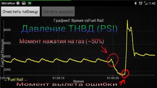 Поведение авто при низком давлении в рампе
