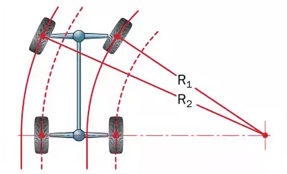 Радиус траектории движения машины при повороте зависит от угла поворота колёс. Поскольку у внешнего колеса радиус больше, чем у внутреннего, то во избежание проскальзывания последнего и ухудшения сцепления с дорожным покрытием, передние колёса должны отклоняться на разные углы.