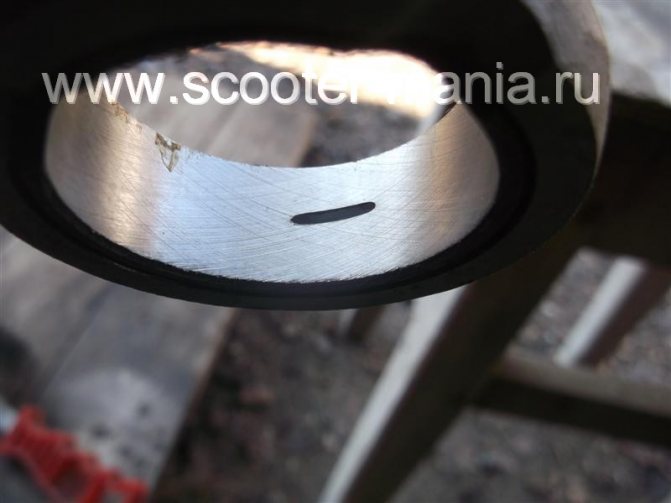 Такого паза, для смазки подшипника вполне достаточно, как видите за счет своевременного охлаждения детали водой, следы синевы полностью отсутствуют. После пропила паза, берем надфили и все заусенсы, острые углы, «другие косяки» как внутри, так и снаружи тщательно зашлифовываем.
