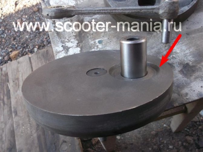 Когда будите набивать вторую щеку на коленвал, будьте внимательны чтобы не ударить по резьбе или конусу оси коленвала. Сильно заморачиваться в этот момент о соосности валов коленвала не надо, достаточно примерно поставить правильно.