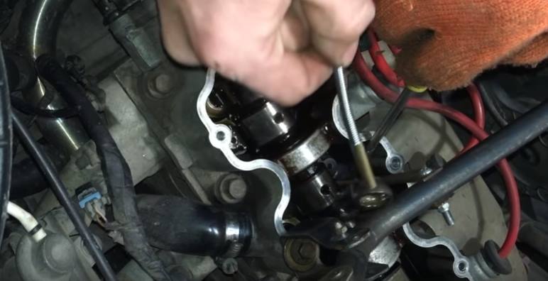 Главное, снимите воздушный фильтр и крышку блока цилиндров. На некоторых моделях, например, нужно будет снять ремень генератора и повернуть генератор в сторону радиатора для получения доступа к болту крепления. Также нужно демонтировать и убрать в сторону всё, что мешает доступу: провода и подводящие шланги.