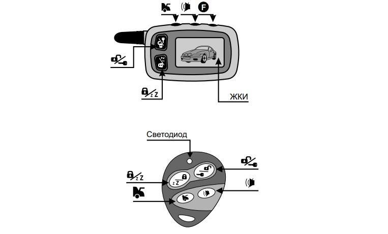- Для назначения кода используются элементы управления коммуникатора. Кнопка с закрытым замком присваивает паролю значение 1, с открытым — 2, с багажником — 3, с перечеркнутым рупором — 4. Производитель предусмотрел возможность использования только символов в диапазоне от 1 до 4 для назначения кода.