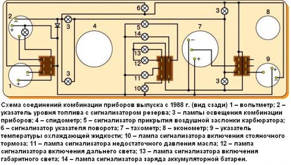 Схема включения щитка приборов представлена на рисунке 1.