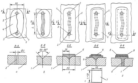 Во время сварки: сила тока 130 А, напряжение 36 В, твердость НВ 170.