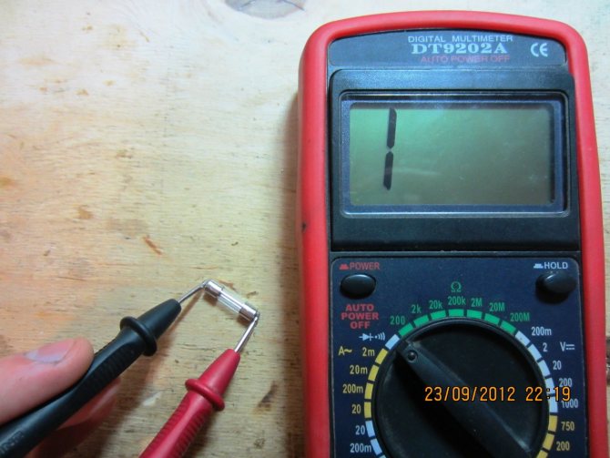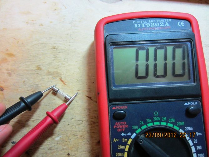 - Сопротивление бесконечно большое, никакого звукового сигнала типа «пип» мы не слышим. Предохранитель в обрыве. Его можно выбрасывать в мусорную корзину.
