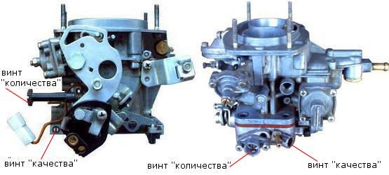 винты регулировки «количества» и «качества» топливной смеси карбюраторов 2108, 21081, 21083 Солекс и 2105, 2107 Озон