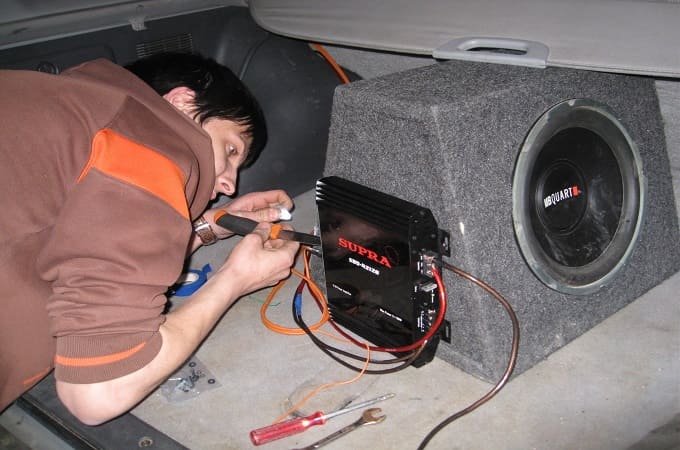 После определения места установки, производится непосредственно установка сабвуфера в машине и его дальнейшее подключение к бортовой сети автомобиля и к усилителю или автомагнитоле.