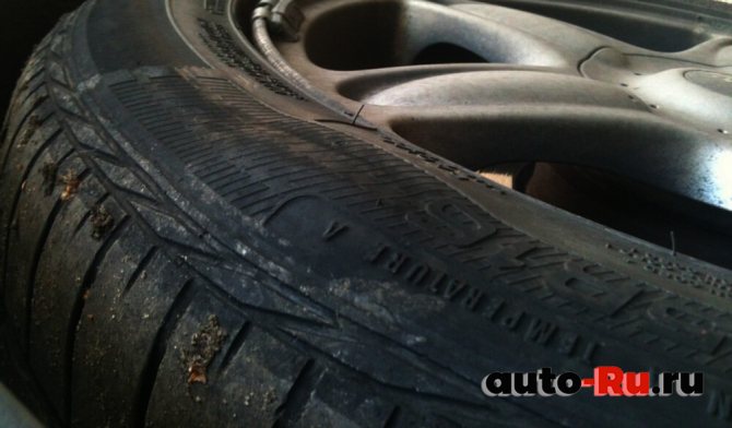 Также такие биения характерны для покрышек, у которых нарушилась геометрия. То есть вылезла «грыжа» в следствии удара о бордюр или камень, а так же в следствии разрыва корта покрышки при езде на спущенном колесе.