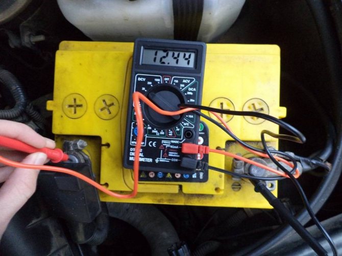 - Замер напряжения мультиметром с отключёнными потребителями тока (выключают фары, габаритные огни, кондиционер, аудиосистему и прочее).