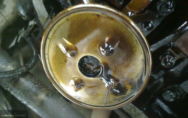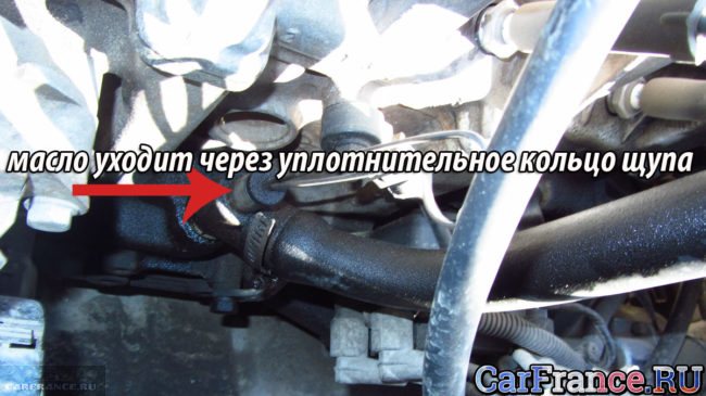Вот так уходило масло в машине редакции. Через уплотнительное кольцо щупа масла.