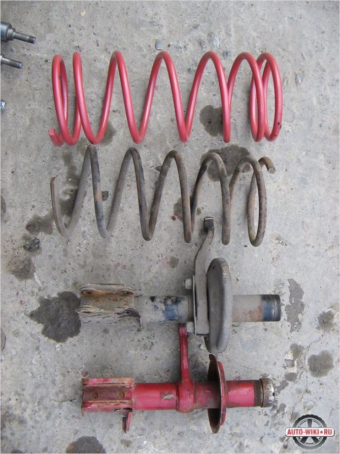 Заниженные пружины. Купить более низкие пружины, а амортизаторы оставить прежние. Как показала практика, такой способ имеет множество недостатков и только одно преимущество — бюджет.