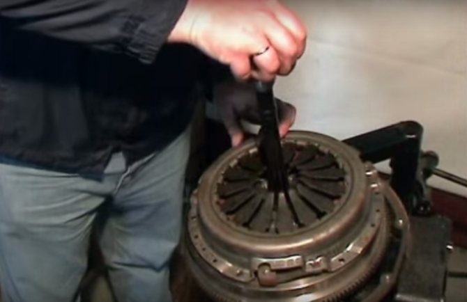 Опять ставим блок на подставку, поддоном к верху. Ставим сцепление, не забыв отцентровать диск первичным валом (или оправкой).