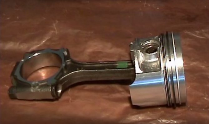 на нижней головке шатуна должны быть направлены в ОДНУ сторону. В нагретый поршень смазанный холодный палец идёт легко, иногда легонько нужно постучать, главное всё делать быстро, пока палец не нагрелся, иначе его начинает «прихватывать». Ставим стопорные кольца, обязательно следим, чтобы они сели в свои канавки в поршне.