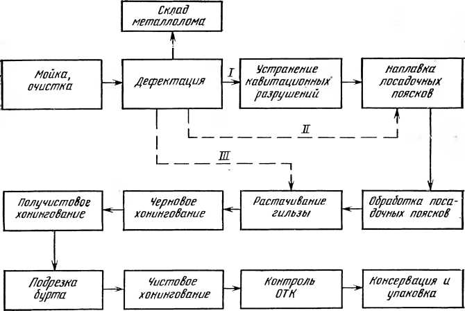 Рис. 72. Схема маршрутов технологического процесса восстановления гильз цилиндров.