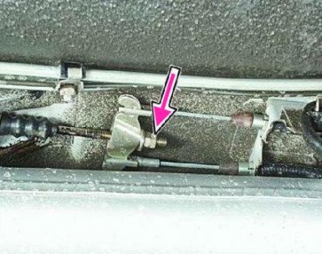 - Открутите наконечник троса привода от приводного рычага.