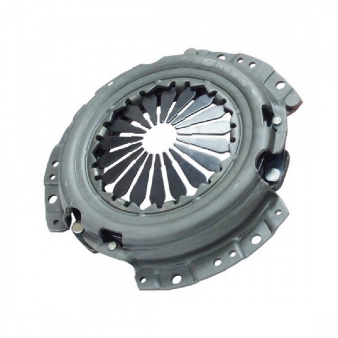 Также в устройстве корзины следует выделить диафрагменную пружину. Данная пружина создает нужное усилие, чтобы эффективно соединять диск и маховик. Получается, от силы прижима будет зависеть передача крутящего момента от ДВС на коробку передач.
