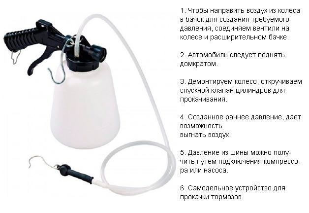 Если работать приходится самостоятельно, схема и последовательность действий почти та же. Педаль можно выжимать самостоятельно, а можно использовать аэратор (цена до 150 рублей).