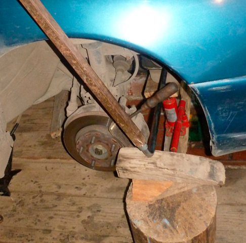 - правая передняя часть автомобиля поднимается, снимается колесо;