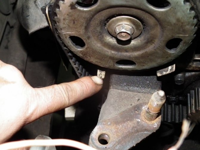 - для фиксации коленчатого вала открывается заглушка на блоке сцепления и в образовавшееся окно вставляется монтировка для заклинивания зубьев маховика;