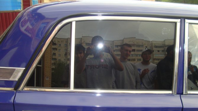 - Металлизированная. Обладает металлическим зеркальным отливом. Такая плёнка может иметь различные оттенки, а значит, её можно подобрать под цвет кузова вашего автомобиля. К окну она крепится так же, как и окрашенная.