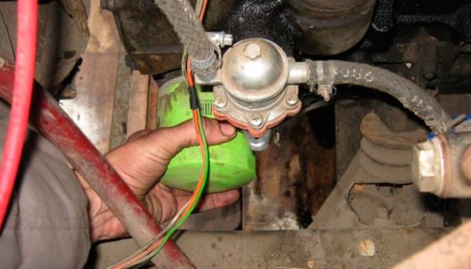 Если топливный насос шумит, но не качает, или не выдает достаточного давления, следует попробовать заменить фильтр грубой очистки.
