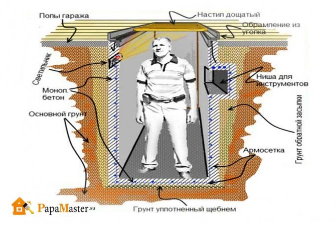 Перед тем как построить яму в гараже, продумывается наличие утепления в ней, от этого зависит выбор общих параметров. Это устройство требует наличия оптимальных условий для работы, как и сам гараж.