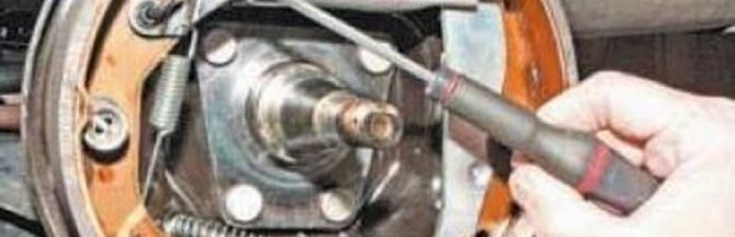 Снимаем стопорную шайбу. Перед снятием тормозного барабана опускаем рычаг стояночного тормоза до упора — автомобиль должен быть расторможен.