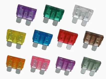 Предохранители старого образца были продолговатые, округлой формы, перемычка крепилась на керамическом корпусе. Современные плавкие вставки плоские, вилочного типа, могут иметь два размера – стандартный и уменьшенный. Вставки имеют разные цвета в зависимости от силы тока, на который они рассчитаны. Существует определенная окраска перемычек: