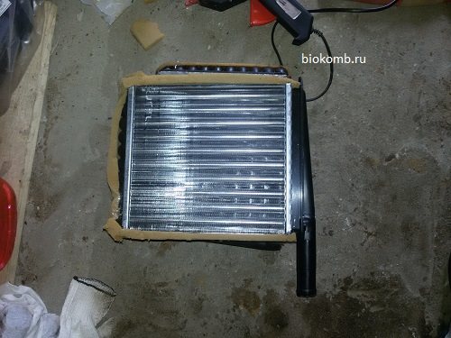 Только что распакованный радиатор печки на Лада Калина