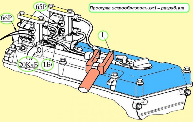 При прокручивании двигателя стартером в разряднике должно наблюдаться искрообразование.