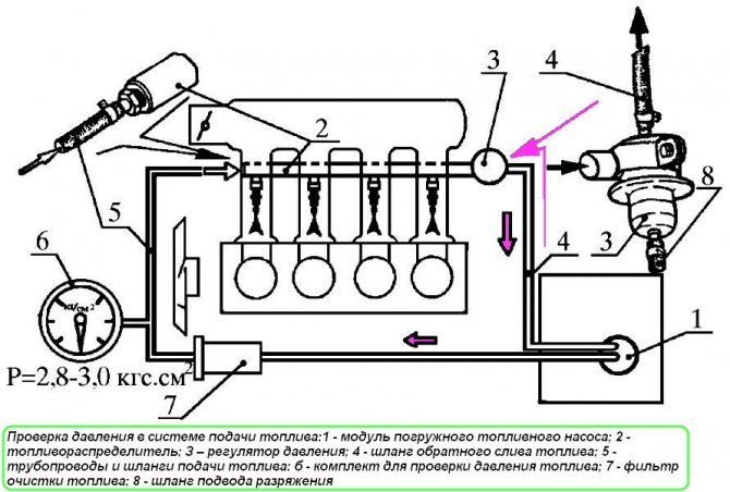 В топливной магистрали должно поддерживаться давление 2,6 — 3,0 кг/см2 и не уменьшаться с течением времени.